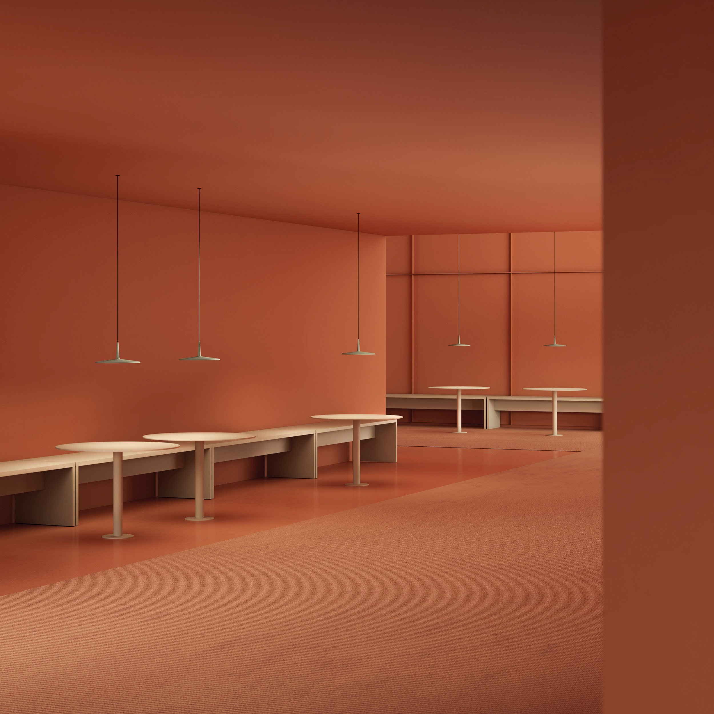 Os Composing Pendants estão disponíveis em 10 das coleções mais icónicas da Vibia — Algorithm, Flat, Halo, Mayfair, North, Skan, Slim, Tempo, Tube e Wireflow — ampliando significativamente as possibilidades de composição.