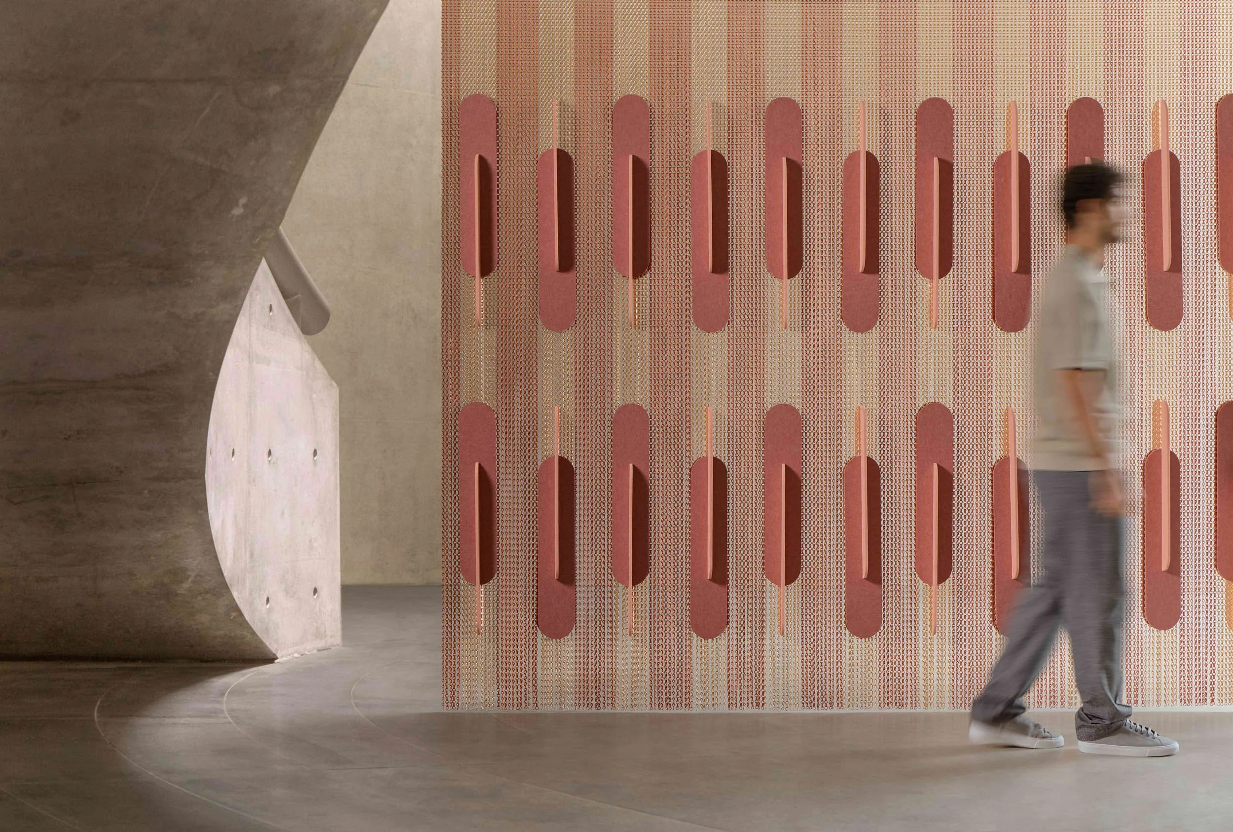 Khronos é o nome da coleção que Rafa Ortega desenhou para a Kriskadecor. Às icónicas correntes de alumínio da marca, o designer industrial juntou materiais reciclados com propriedades acústicas, criando ambientes para serem vividos, sentidos e recordados.